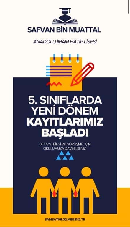 Samsat Safvan Bin Muattal Anadolu İmam Hatip Lisesi Ortaokulu’nda 5. sınıf kayıtlarımız açıldı.